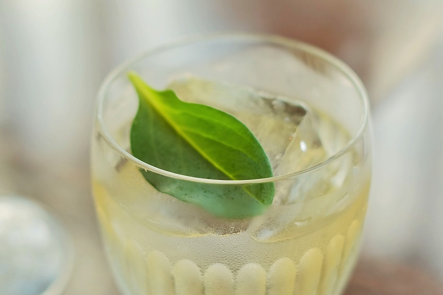 そのひとつ、『移動祝祭日(A Moveable Feast)』と名付けられたカクテルは、グリーンリーフがトッピングされた透明感のあるもの。