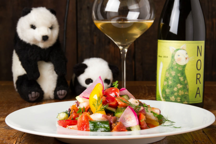 いつもどこかに必ず座ってワインを飲んでいるパンダのぬいぐるみ。そんな遊び心も好評。ワインに興味のなかった若い女性客も、帰る頃にはワインが好きになってくれるそう。